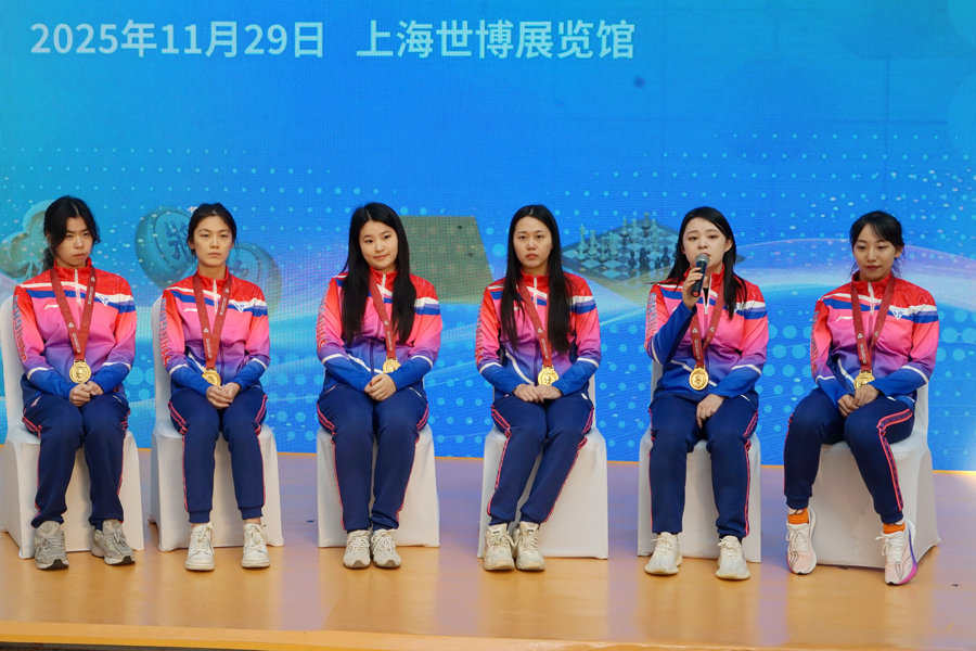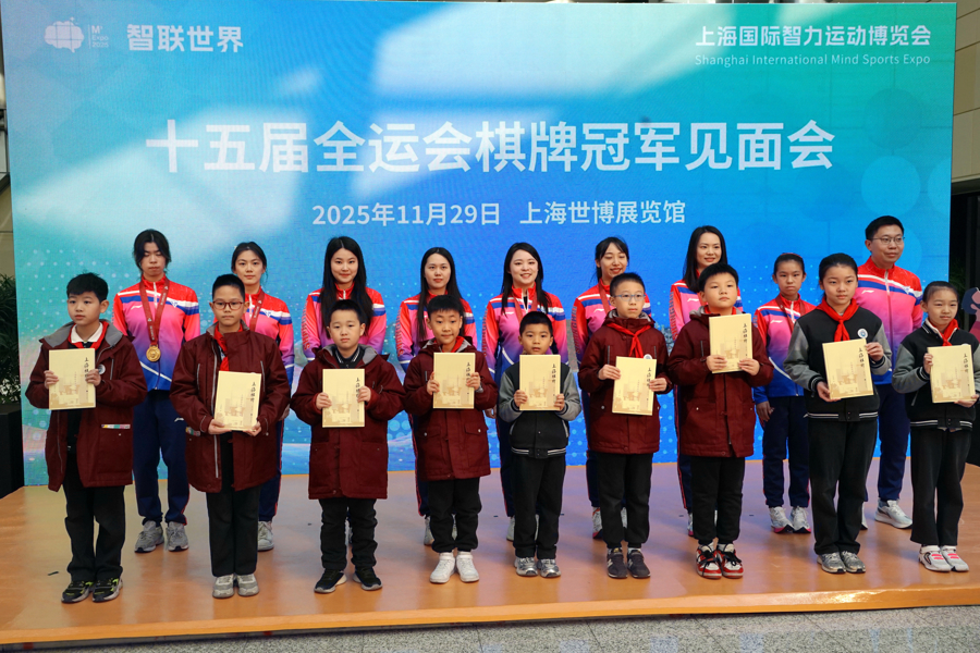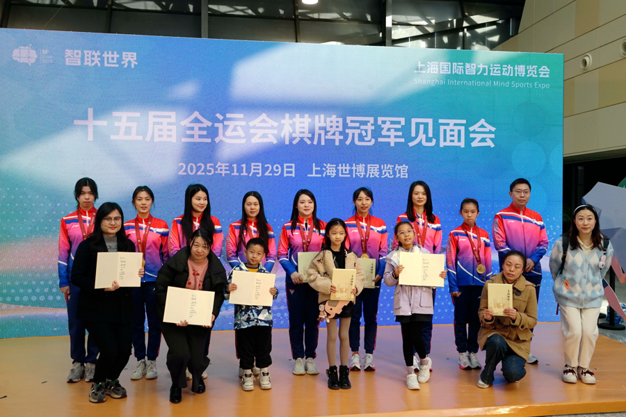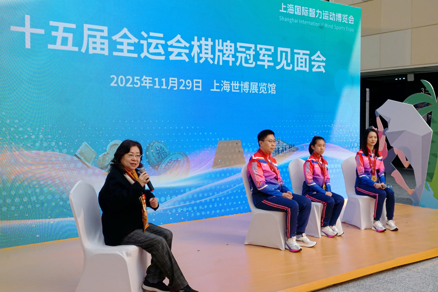第十五届全运会群众项目棋牌比赛,上海队在围棋、象棋、国际象棋、桥牌4个大项24小项的比赛中取得5金3银3铜的优异成绩。今天上午,作为2025上海国际智力运动博览会的重要活动之一,全运会冠军见面会在上海世博展览馆举行。王琛、徐亦辰、徐铭蔚、李诗怡、楼明慧、茅艳婷、杨玲依、江奕萱、徐彤9名金牌获得者与棋牌爱好者面对面交流,分享夺冠经历和感悟。