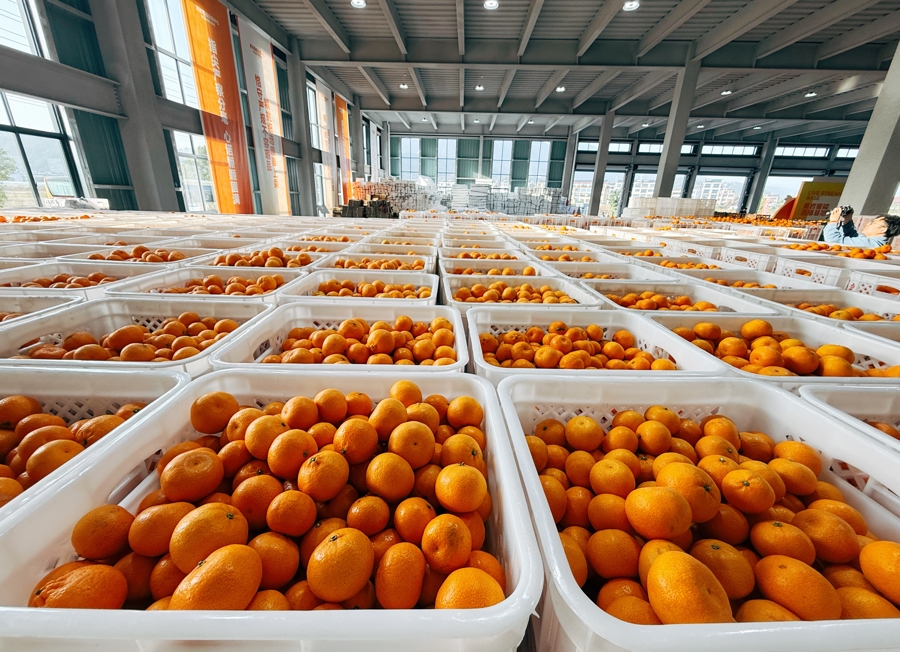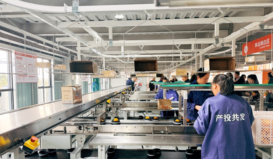 在蜜橘种源研究中心,围绕优化提升黄岩蜜橘的品种和品质,一项又一项新技术、新机械在这里试水并推广;在黄岩蜜橘分选中心,新建成投用的德菲洛自由托盘式无损水果分选线,可依据蜜橘的重量、糖度等多维度指标精准打分、自动化分级,实现蜜橘高效分选,配套的冷库,为产区提供“分选—仓储—外销”一站式服务。